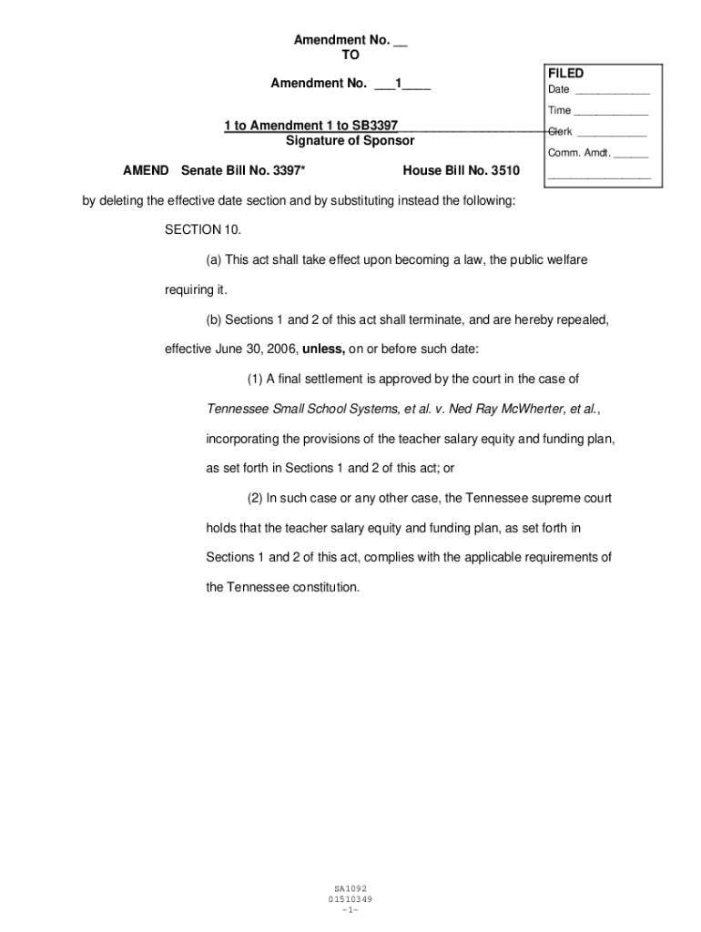 Amendment No. __ TO Amendment No. ___1___FILED Date ___ Time ___1 to Amendment 1 to SB3397___ Clerk ___ Signature of Sponsor Comm. ADT. ___AMEND Senate Bill No. 3397×House Bill No. 3510___by deleting