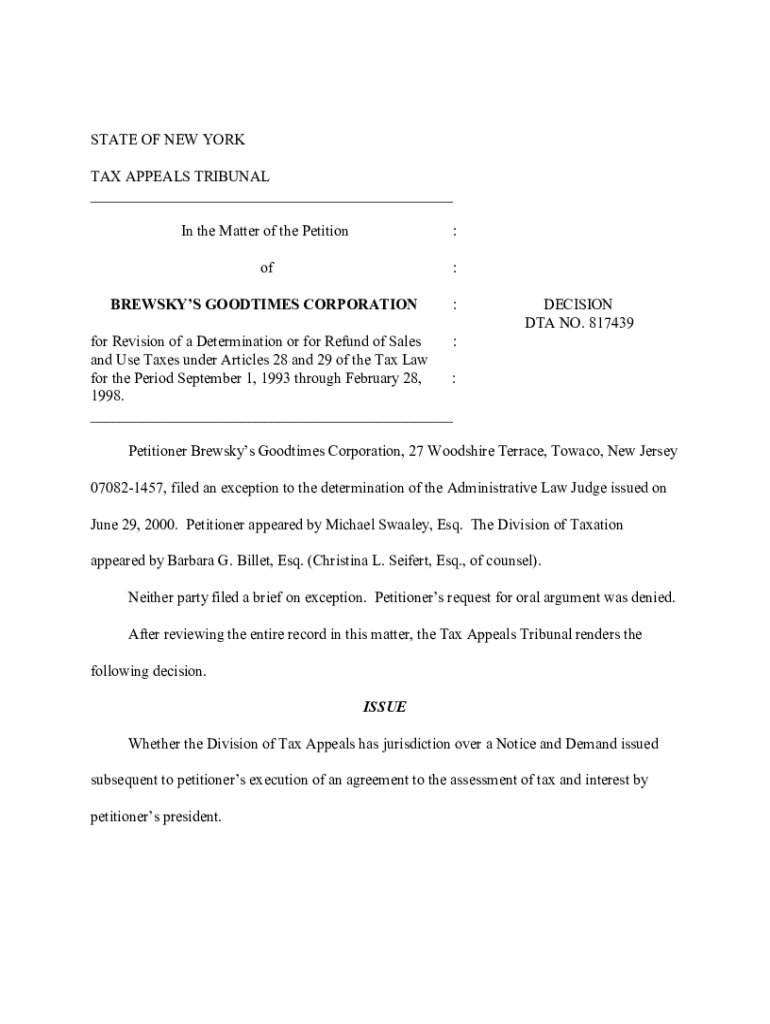 DTA NO. 817439for Revision of a Determination or for Refund of Sales