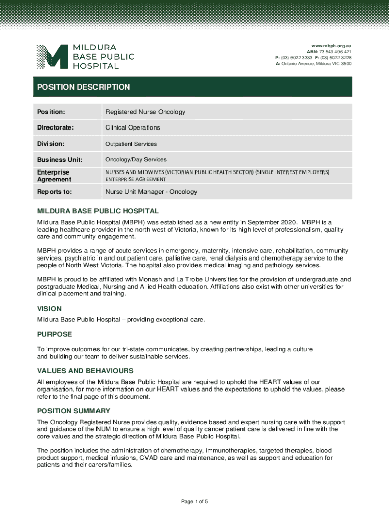 A: Ontario Avenue, Mildura VIC 3500POSITION DESCRIPTION