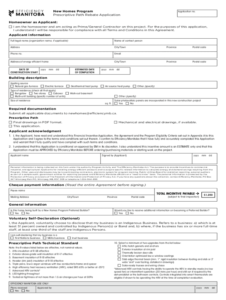 Prescriptive Path Rebate ApplicationApplication no. Homeowner as Applicant: