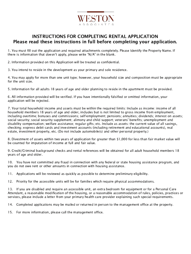 INSTRUCTIONS FOR COMPLETING RENTAL APPLICATION Please read these instructions in full before completing your application. 1. You must fill out the application and required attachments completely.