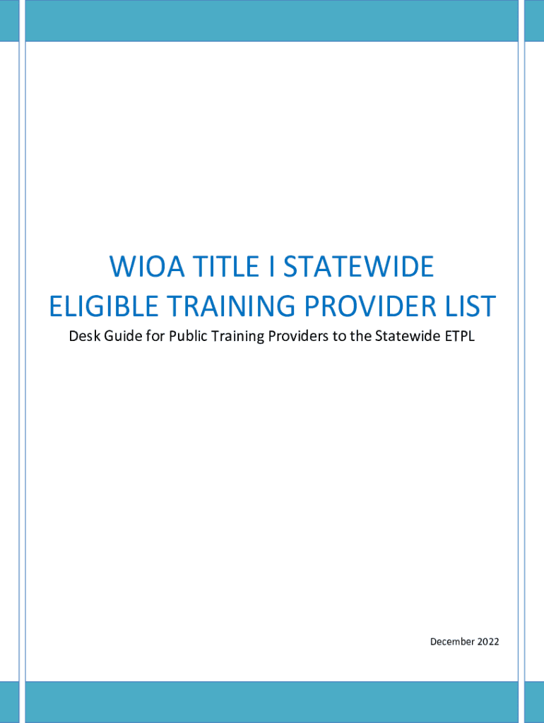 WHOA, TITLE I STATEWIDE ELIGIBLE TRAINING PROVIDER LIST Desk Guide for Public Training Providers to the Statewide ETPLDecember 2022Desk Guide for Public Training Providers to the Statewide ETPLContentsIntroduction