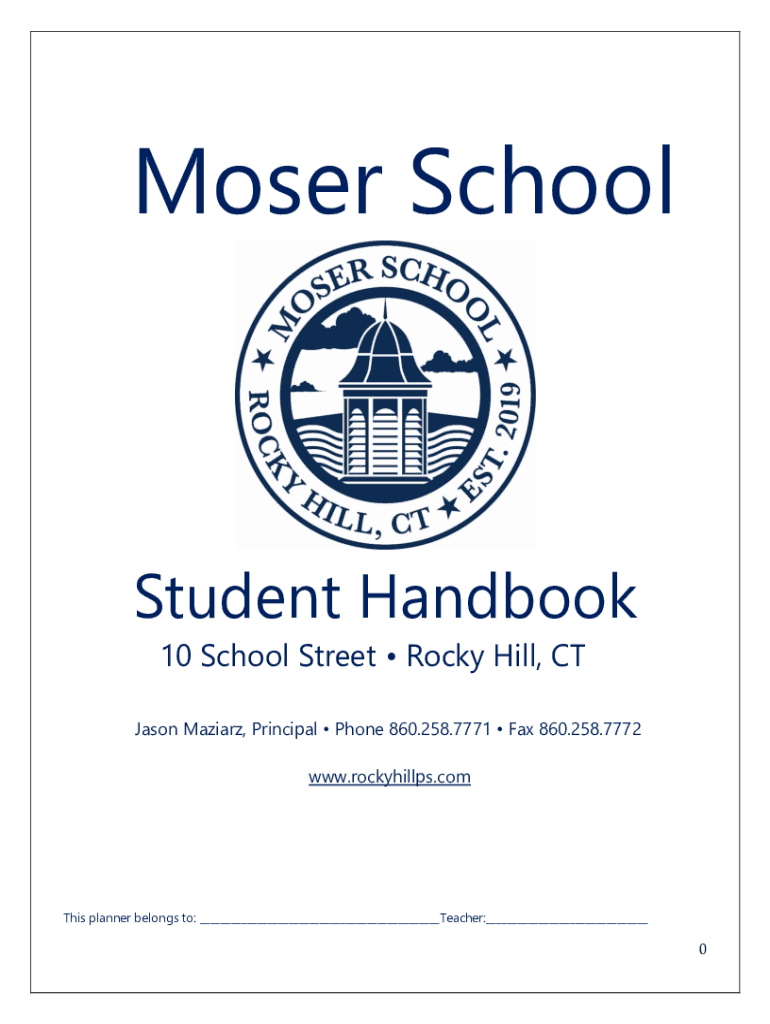 Moses SchoolStudent Handbook 10 School Street Rocky Hill, CT Jason Maria, Principal Phone 860.258.7771 Fax 860.258.7772 www.rockyhillps.comThis planner belongs to: ___Teacher:___0TABLE OF CONTENTS