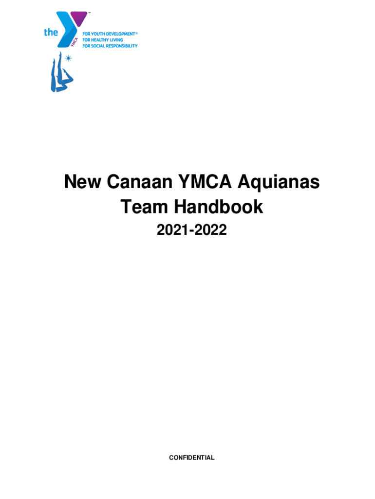 New Canaan YMCA Aquinas Team Handbook 20212022CONFIDENTIALNew Canaan YMCA Aquinas Team Handbook Table of Contents Handbook3Team History4Coaching Staff5Team Unify6New Canaan YMCA Volunteer Information8USAAS