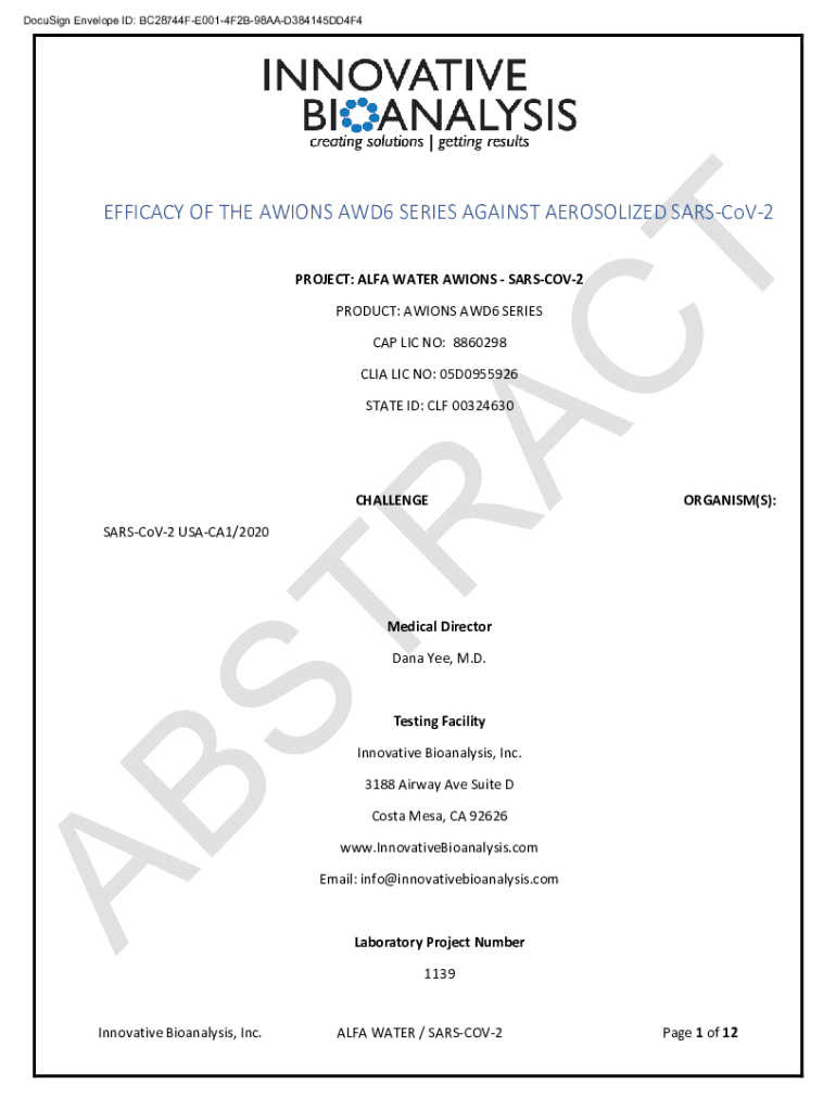 Get the free EFFICACY OF THE AWIONS AWD6 SERIES AGAINST AEROSOLIZED SARS-CoV-2