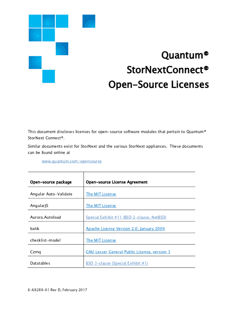 Resource LicensesThis document discloses licenses for open source software modules that pertain to Quantum