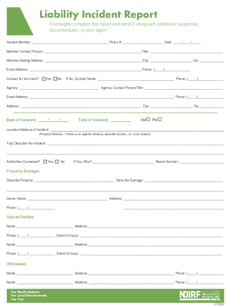 Get the free Liability Incident Report