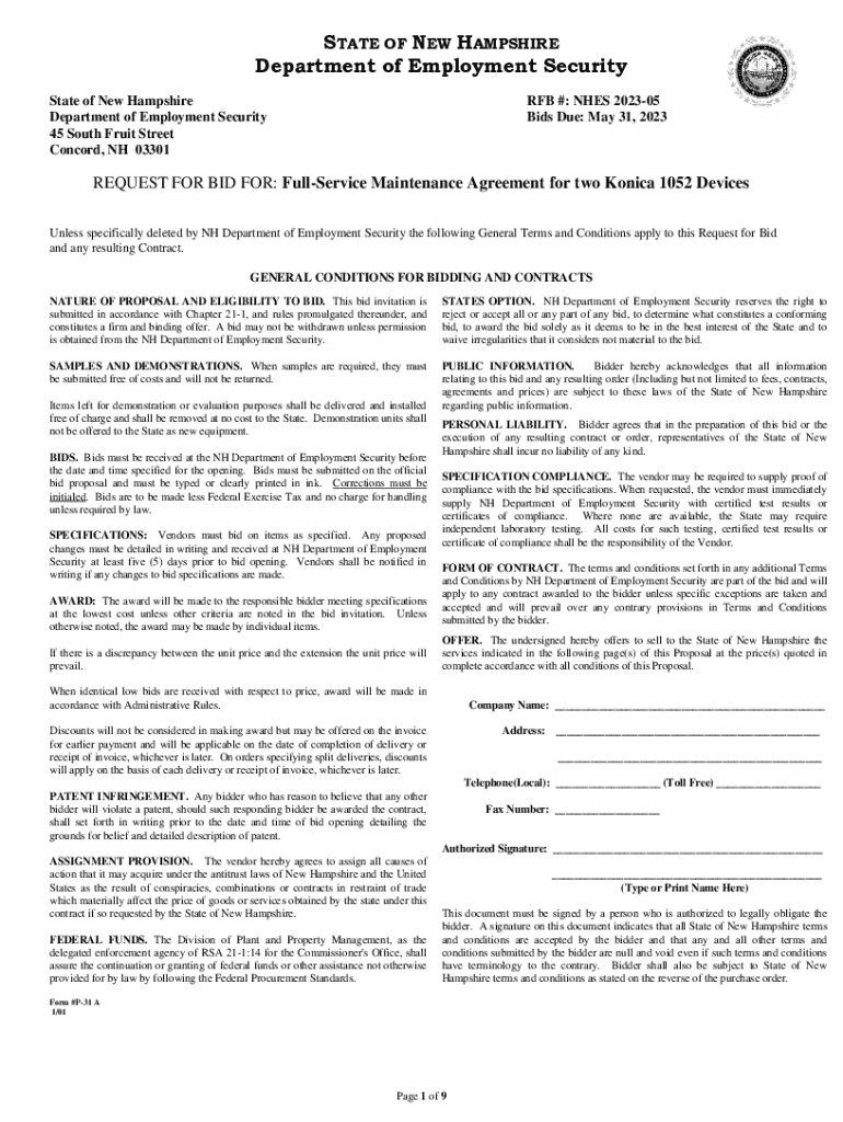 STATE OF NEW HAMPSHIRE Department of Employment Security State of New Hampshire Department of Employment Security 45 South Fruit Street Concord, NH 03301RFB #: NHS 202305 Bids Due: May 31, 2023REQUEST