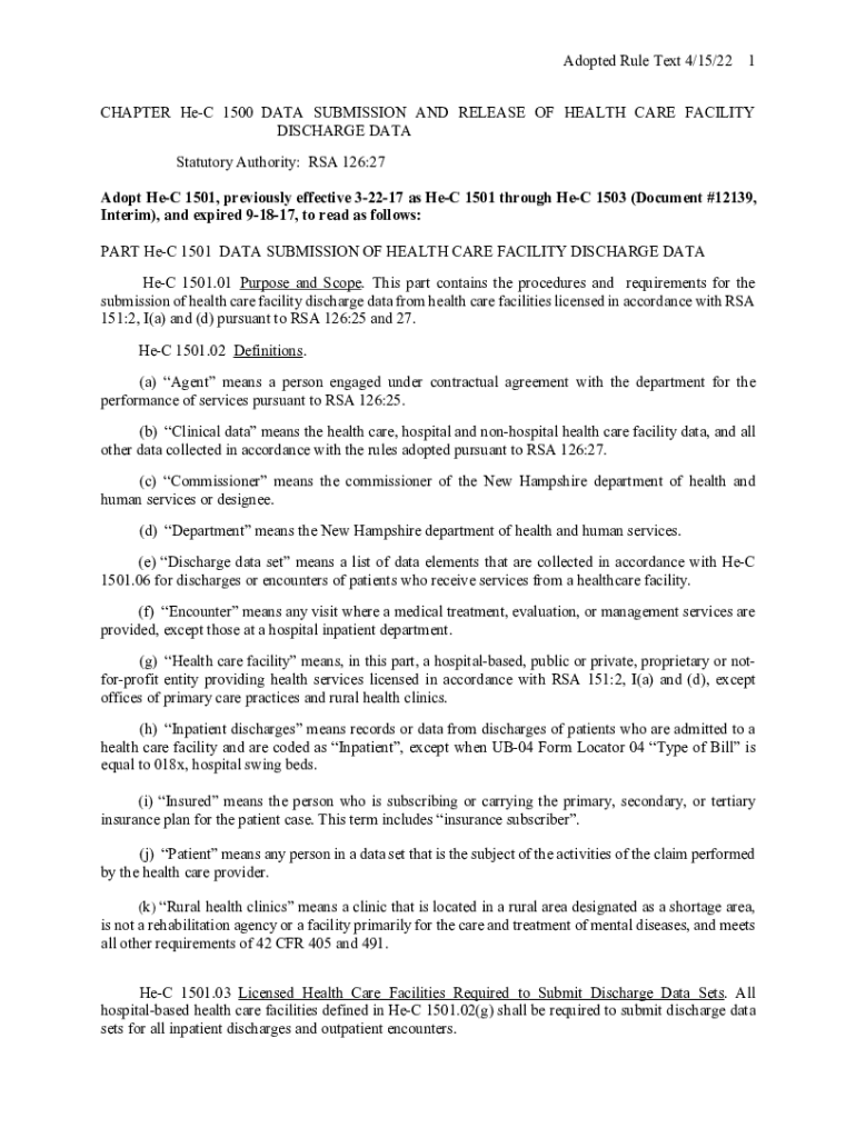 Get the free N.H. Code Admin. R. He-C 1503.01State Regulations