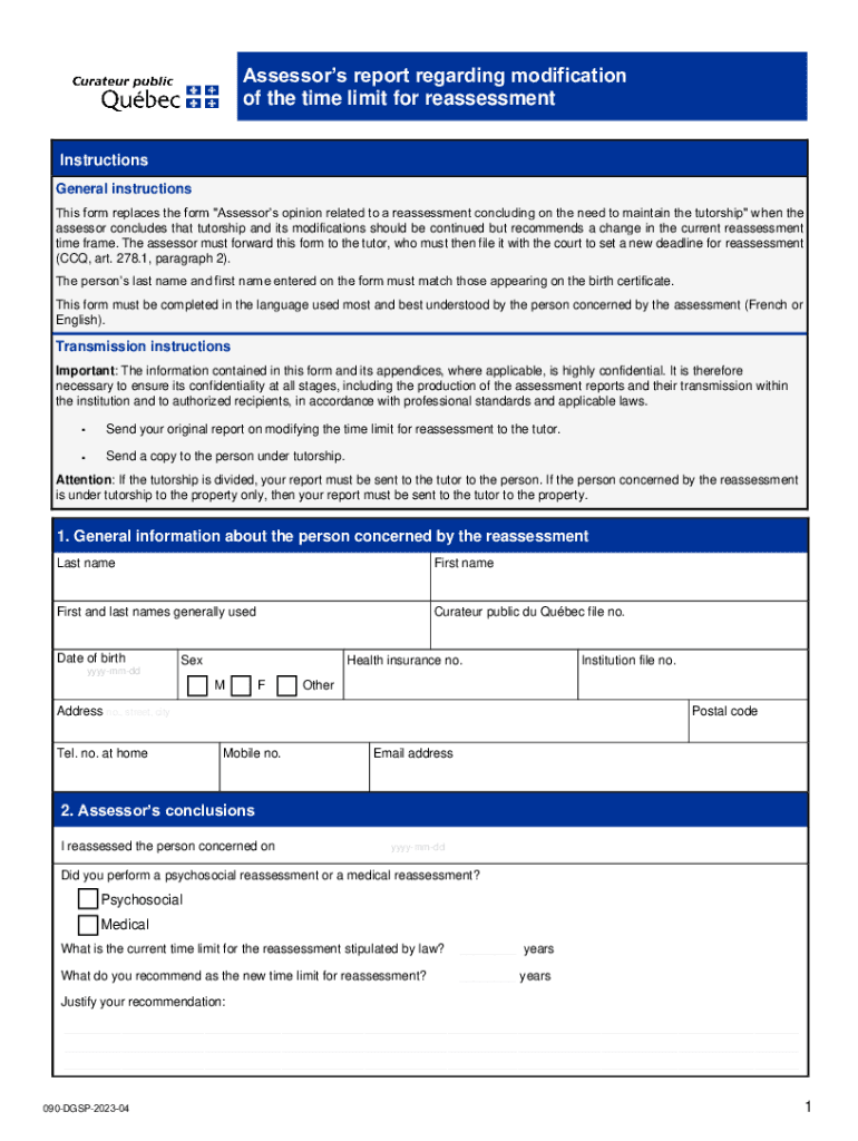 Get the free Assessors report regarding modification of the time limit for reassessment. Form for...