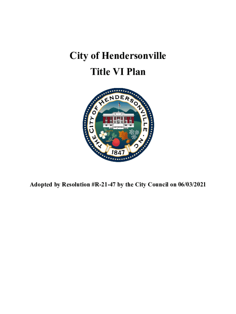 City of Hendersonville Title VI PlanAdopted by Resolution #R2147 by the City Council on 06/03/2021Table of Contents Introduction ...................................................................................................................................