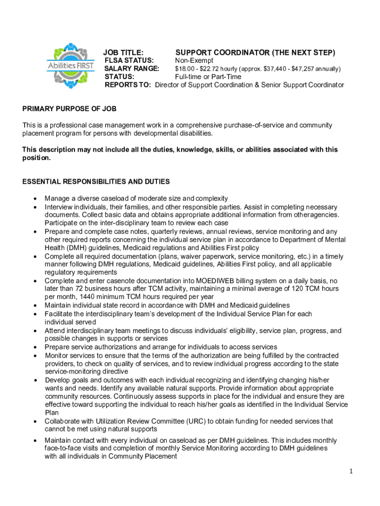 JOB TITLE:SUPPORT COORDINATOR (THE NEXT STEP)FLEA STATUS: