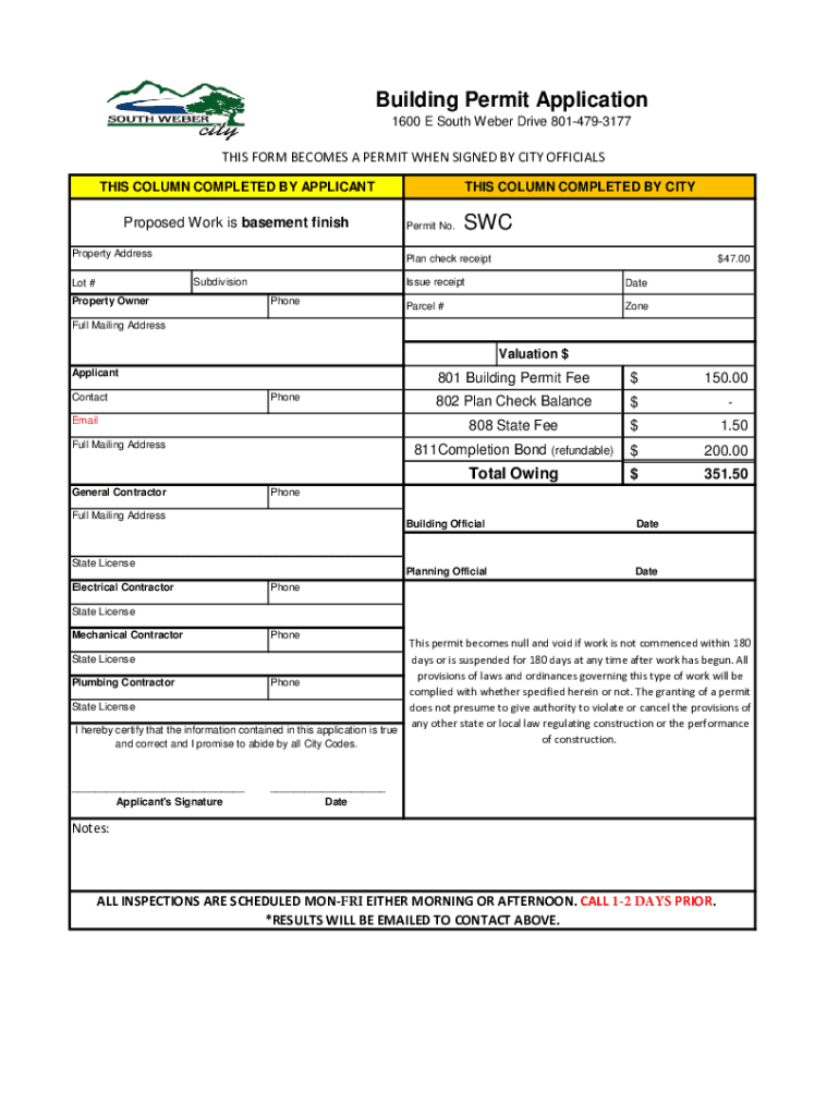 1600 E South Weber Drive 8014793177THIS FORM BECOMES A PERMIT WHEN SIGNED BY CITY OFFICIALS