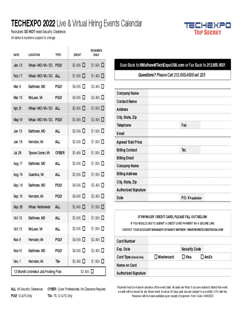 2022Technology | Cyber | Engineering | Intelligence2022 Recruitment Strategy & Upcoming Hiring Events The Leader in Professional Unperson & Virtual Hiring EventsTECHEXPOUSA.COM2022Details 57% of all