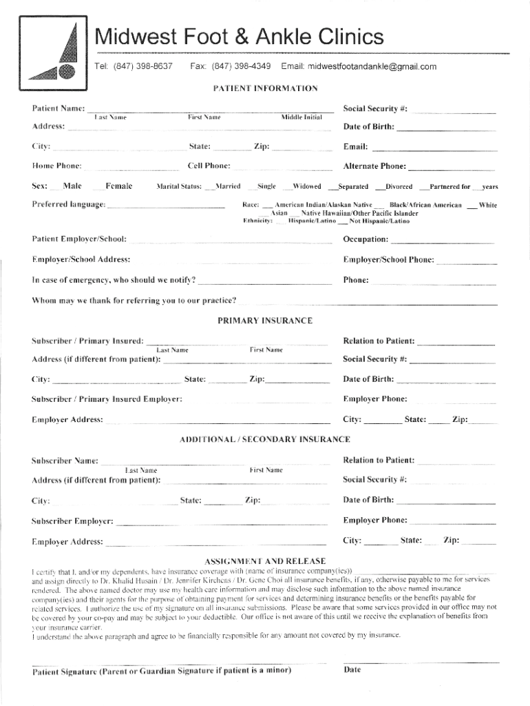 Fax. (847) 3984349 Email: midwestfootandankle@gmail.comTel. (847) 3988637PATIENT INFORMATIONPatient Name:Social Security #: