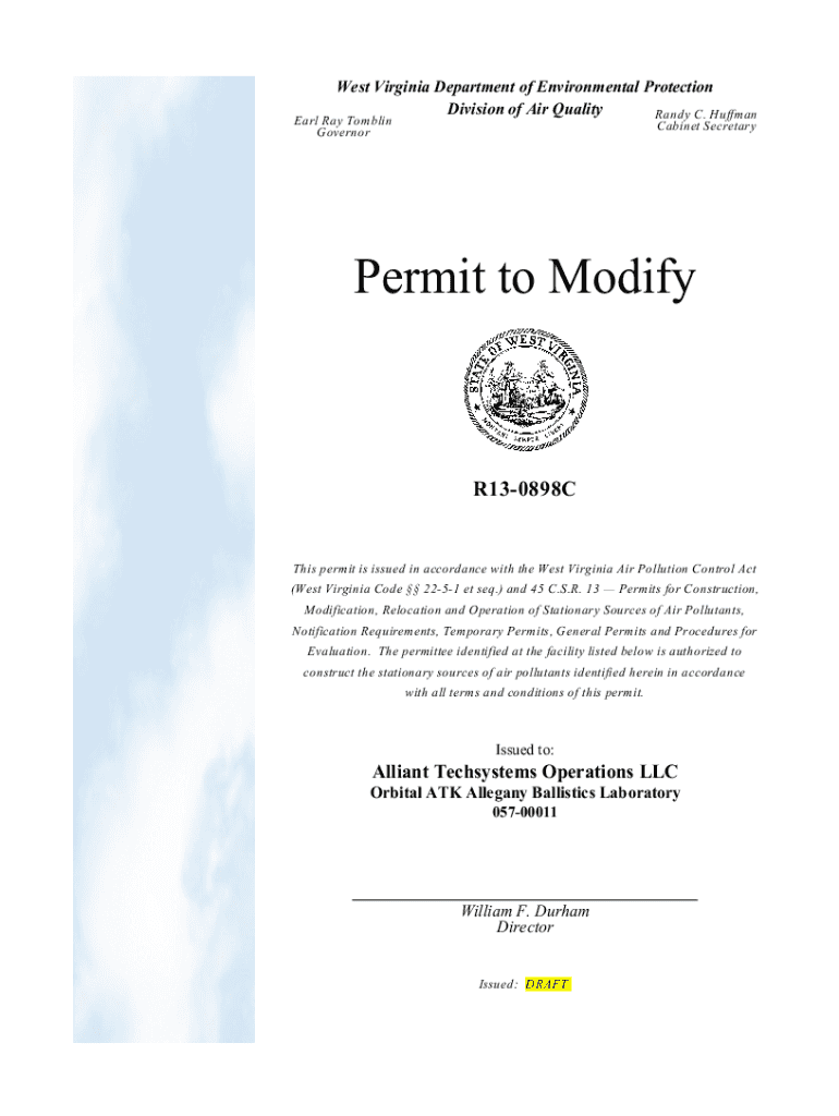 Get the free PERMIT MODIFICATION APPROVAL - dep wv