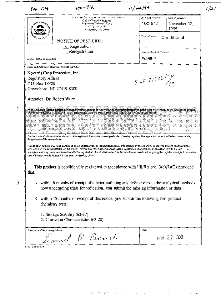 Get the free U.S. EPA, Pesticide Product Label, FULFILL, 11/22/1999. Pesticide Product Label, FUL...
