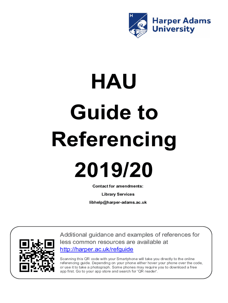 HAD Guide to Referencing 2019/20 Contact for amendments: Library Services libhelp@harperadams.ac.ukAdditional guidance and examples of references for less common resources are available at http://harper.ac.uk/refguide