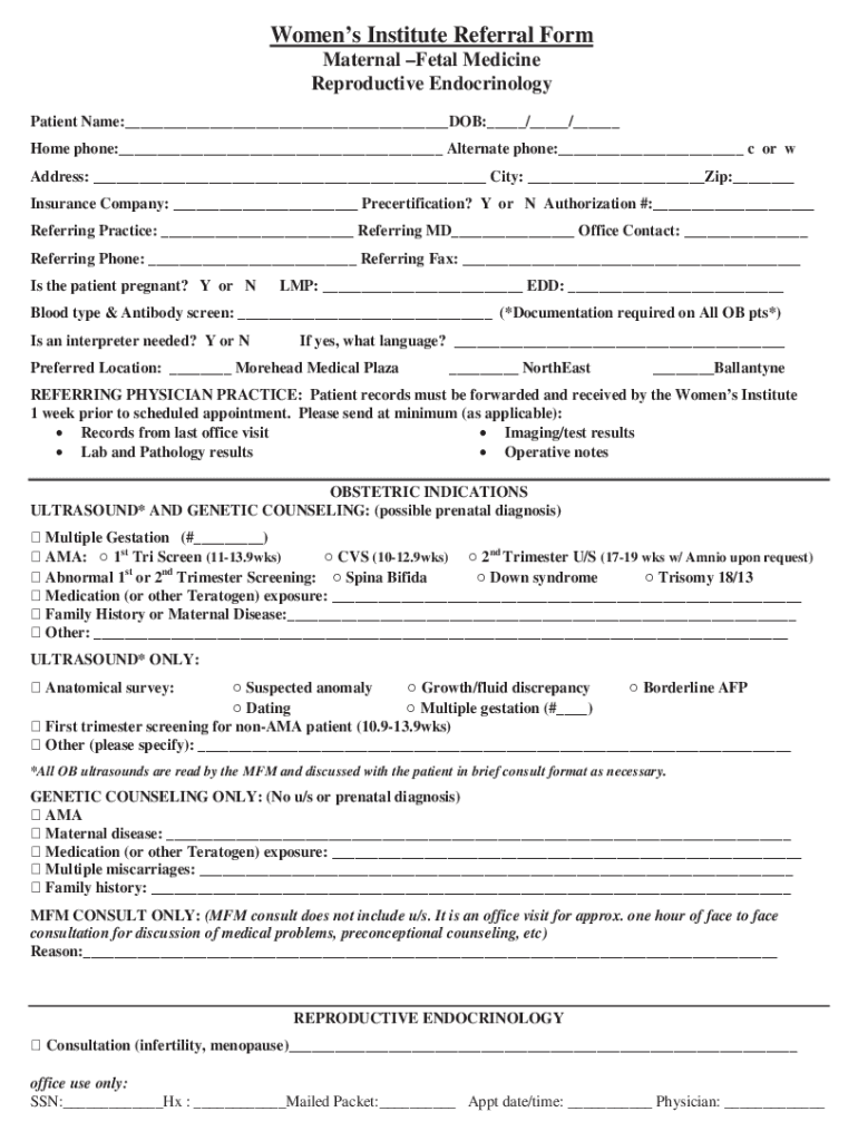 Get the free Women's Institute Referral Form - Maternal