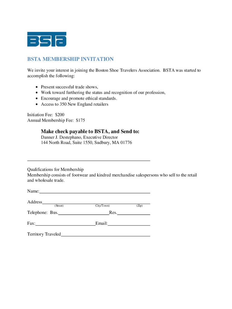 Get the free Become a Member - Boston Shoe Travelers Association