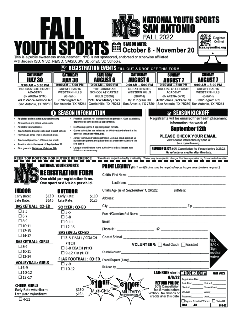 To fill out National Youth Sportskids Out, you will need to provide information about the youth sports event, participants, and organizers.