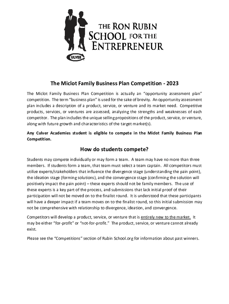 The Mi clot Family Business Plan Competition 2023 The Mi clot Family Business Plan Competition is actually an opportunity assessment plan competition. The term business plan is used for the sake of