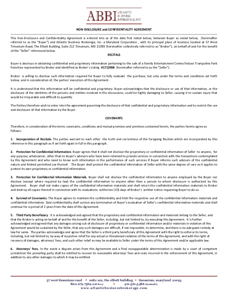 NONDISCLOSURE and CONFIDENTIALITY AGREEMENT This Nondisclosure and Confidentiality Agreement is entered into as of the date first noted below, between Buyer as noted below, (hereinafter referred to