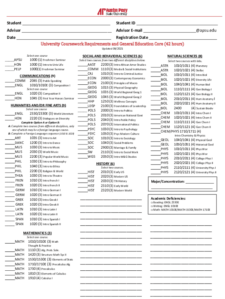 Student ___Student ID ___Advisor ___ Advisor Email ___@apsu.edu