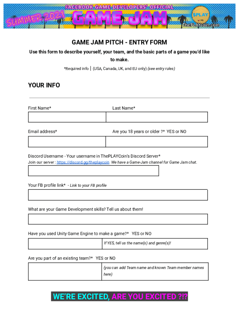 Get the free GAME JAM PITCH - ENTRY FORM