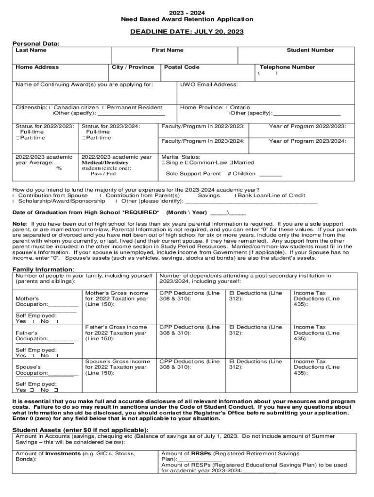 Need Based Award Retention ApplicationDEADLINE DATE: JULY 20, 2023,