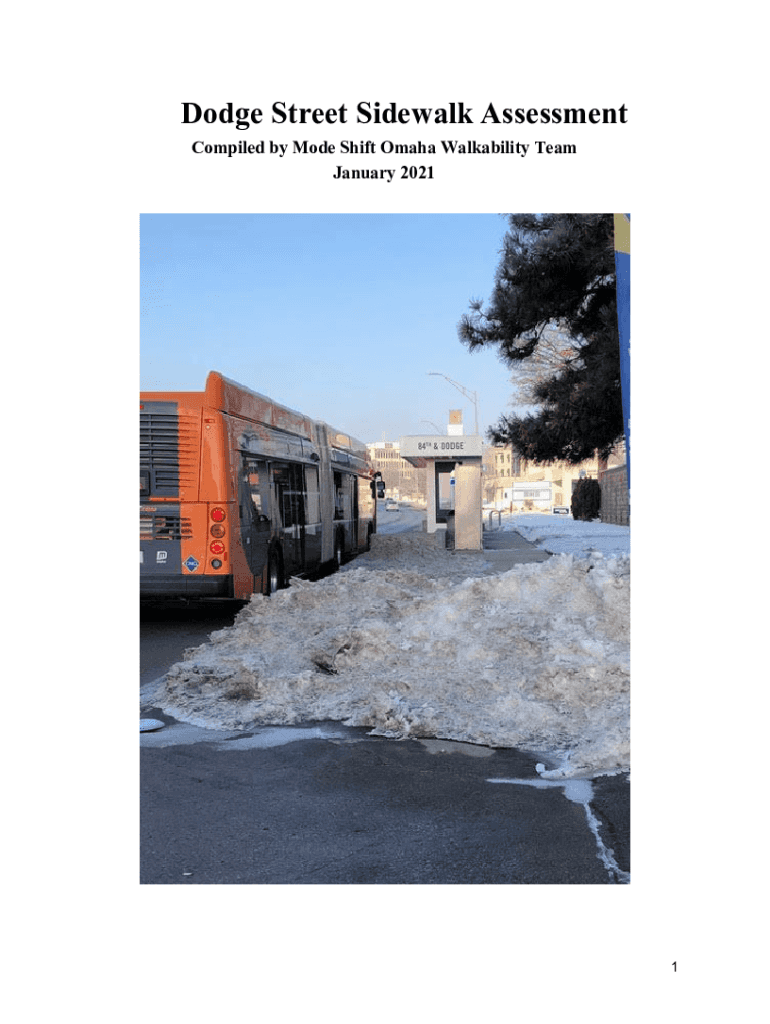 Dodge Street Sidewalk Assessment Compiled by Mode Shift Omaha Walk ability Team January 20211Anecdotal evidence suggests people do not enjoy using sidewalks on Dodge Street in Omaha because they are