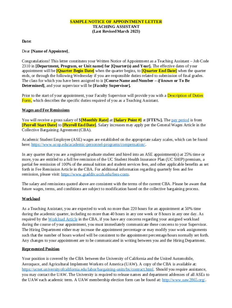 What is Notice.of.Appointment.Letter-Teaching.Assistant. ... - ap ucsb Form?