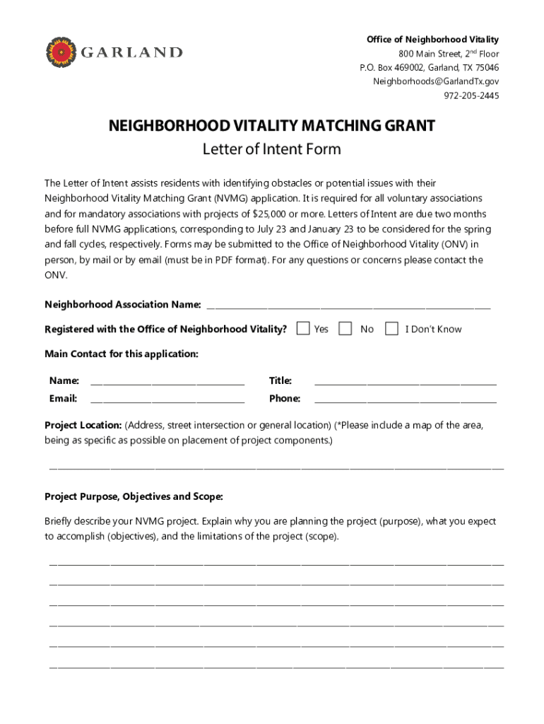 Get the free NEIGHBORHOOD VITALITY MATCHING GRANT Letter of Intent Form