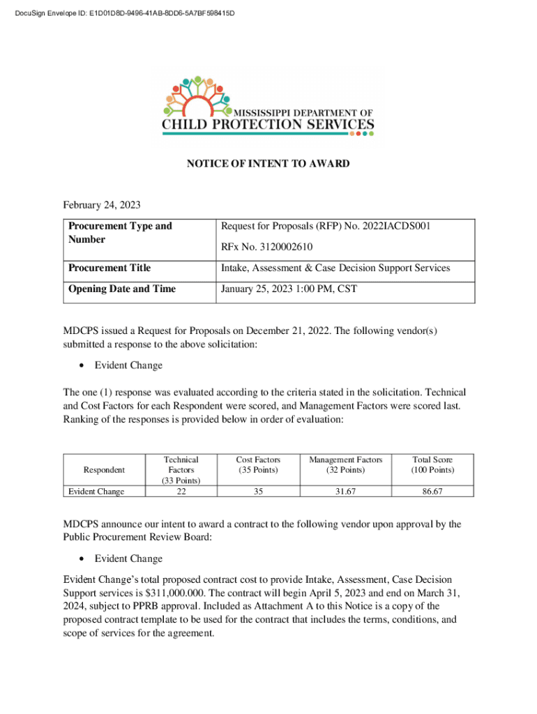 DocuSign Envelope ID: E1D01D8D949641AB8DD65A7BF598415DNOTICE OF INTENT TO AWARD February 24, 2023,