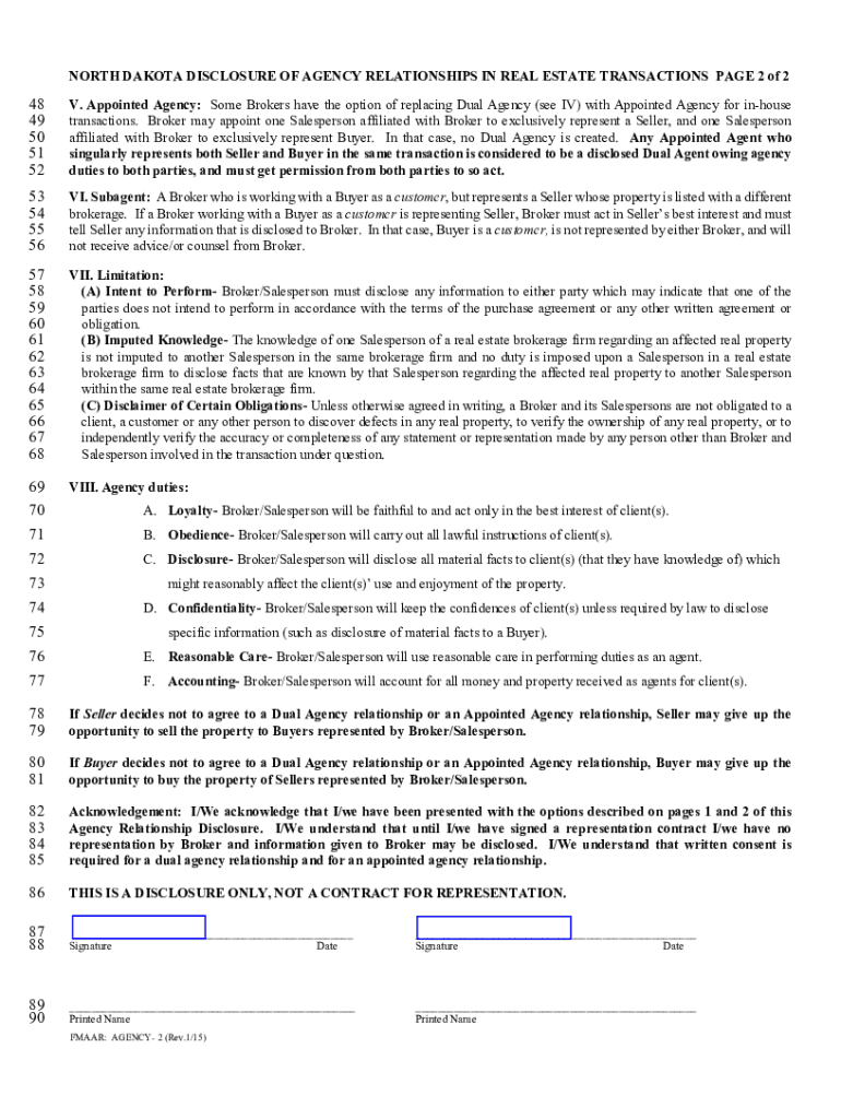 NORTH DAKOTA DISCLOSURE OF AGENCY RELATIONSHIPS IN REAL ESTATE TRANSACTIONS PAGE 1 of 2 This form approved by the FargoMoorhead Area Association of REALTORS which disclaims any liability arising out