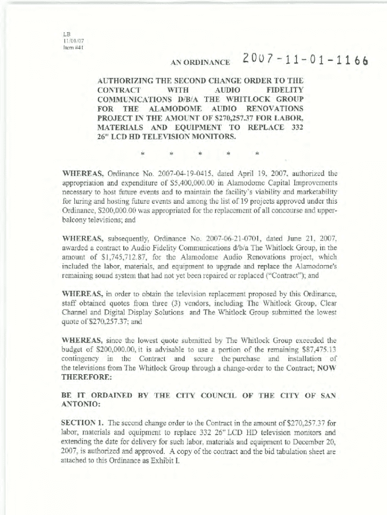 LB 11 /01 /07 Item #41AN ORDINANCE20U71101116&AUTHORIZING THE SECOND CHANGE ORDER TO THE CONTRACT WITH AUDIO FIDELITY COMMUNICATIONS D/B/A WHITLOCK GROUP FOR THE ALAMODOME AUDIO RENOVATIONS PROJECT