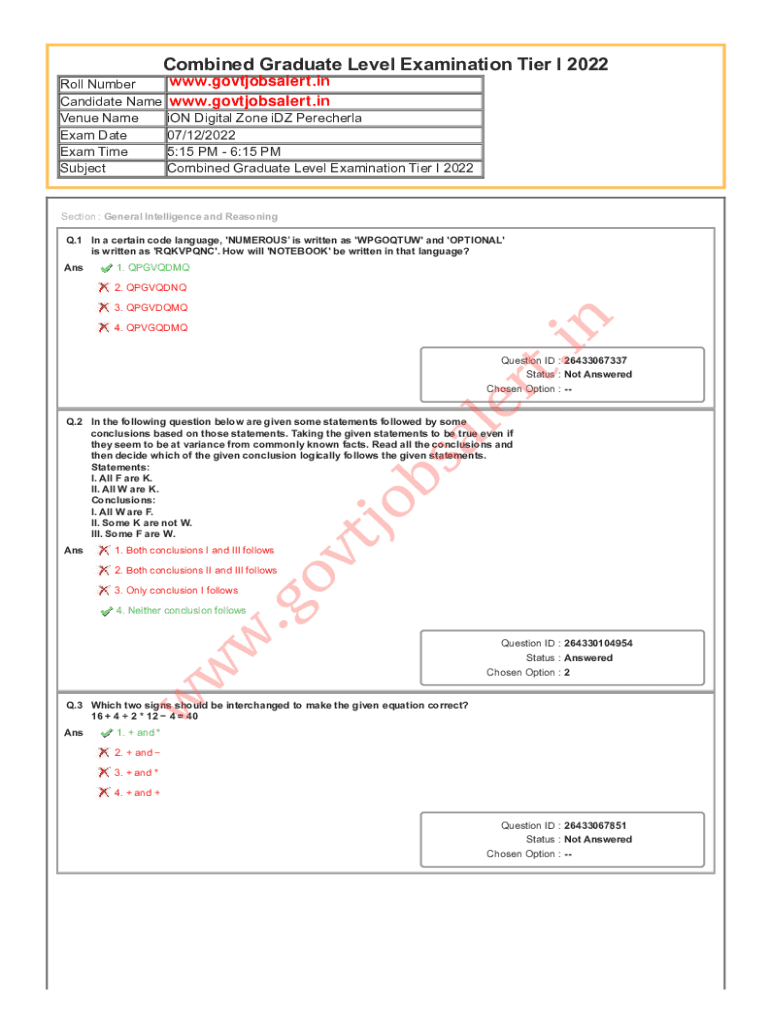 Combined Graduate Level Examination Tier I 2022