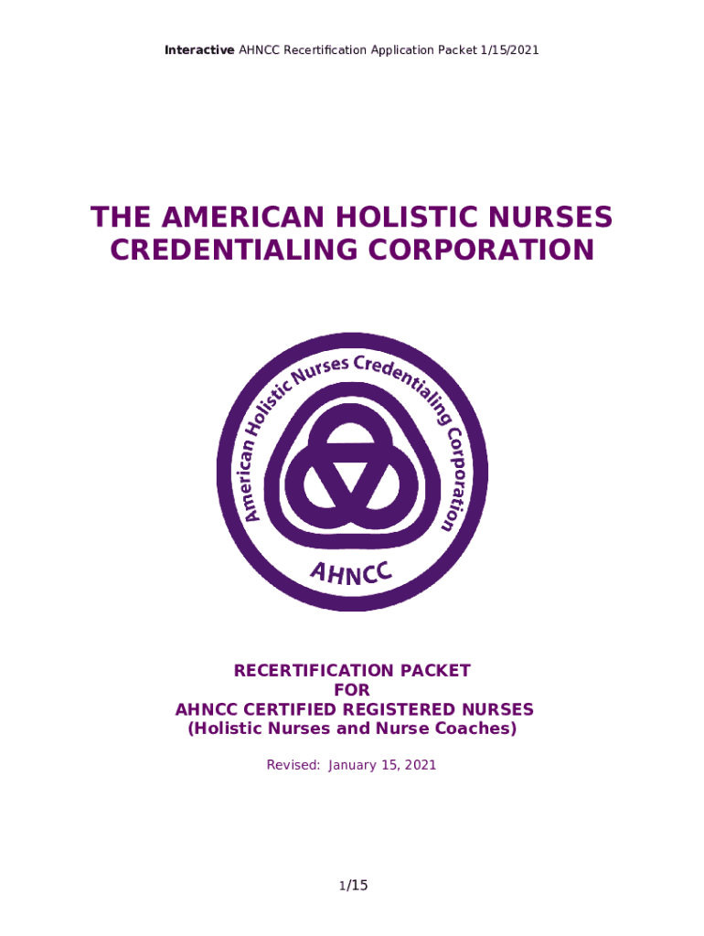 Template Nurse Coach Board Certification - Certified Holistic Nurse instructions