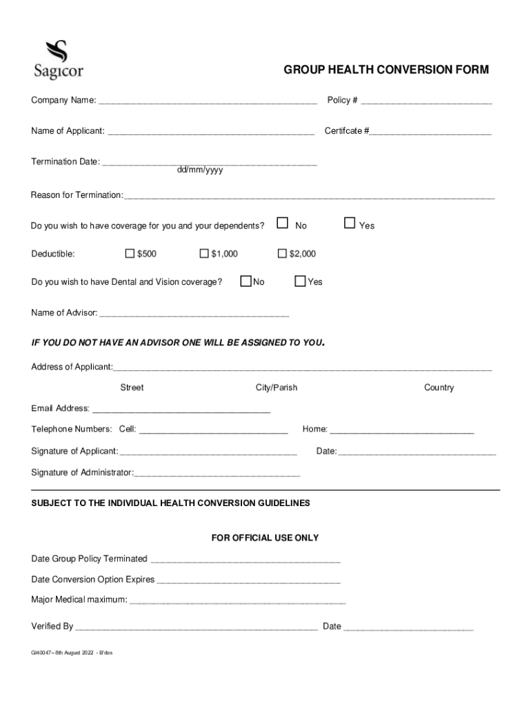 Get the free GROUP HEALTH CONVERSION FORM