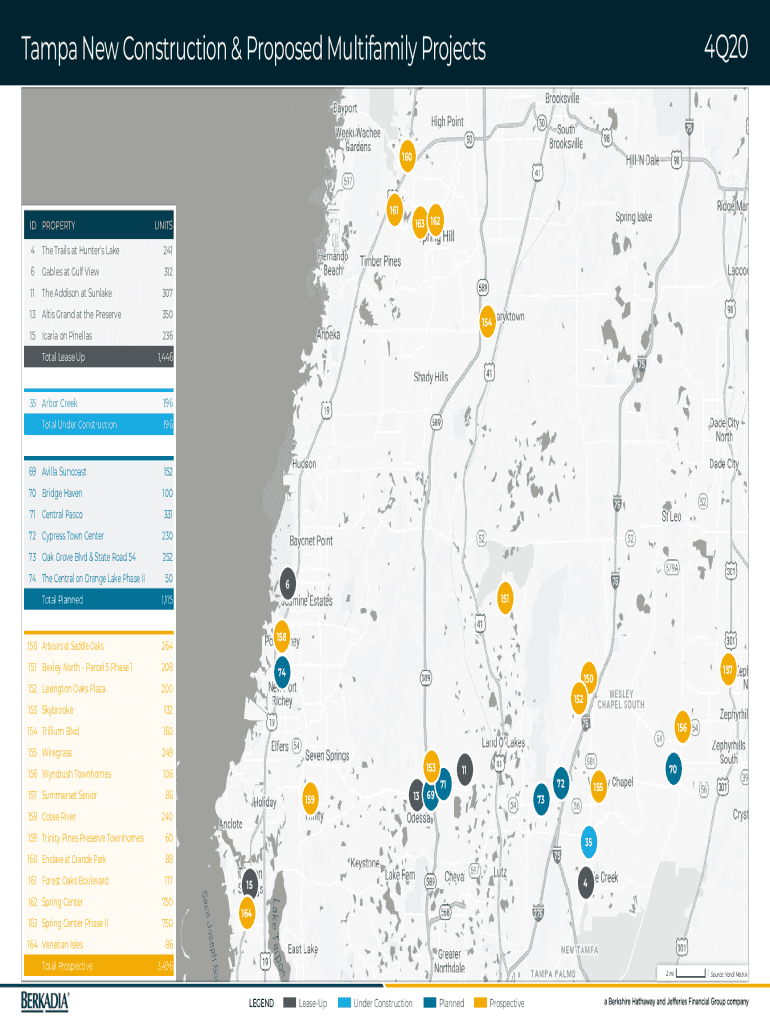 4Q20Tampa New Construction & Proposed Multifamily Projects 160IDPROPERTY4The Trails at Hunter\'s Lake2416Gables at Gulf View31211The Addison at Sunlake30713Altis Grand at the Preserve35015Icaria on