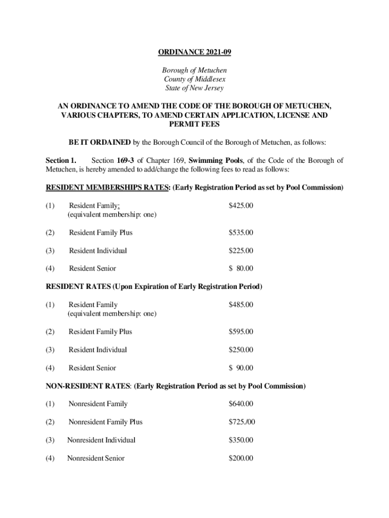 ORDINANCE 202109 Borough of Matches County of Middlesex State of New Jersey AN ORDINANCE TO AMEND THE CODE OF THE BOROUGH OF MATCHES, VARIOUS CHAPTERS, TO AMEND CERTAIN APPLICATION, LICENSE AND PERMIT