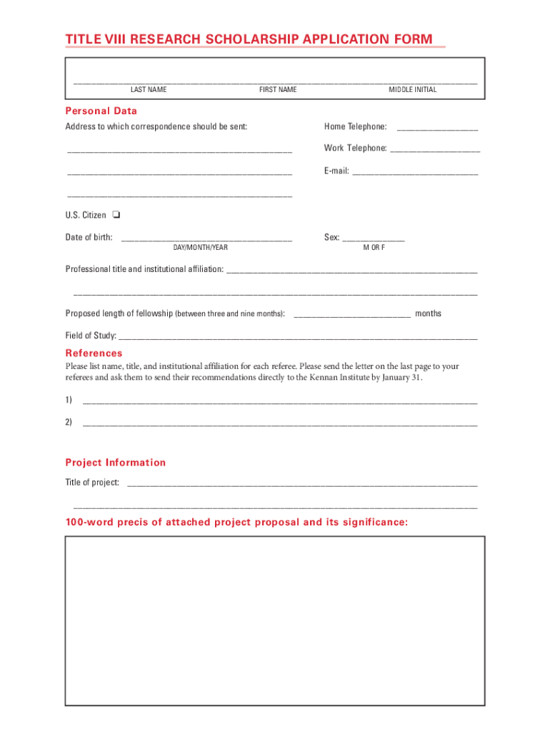 Title VIII Research Scholarships at the Kennan InstitutePlease see the following pages for information about the Kennan Institute Title VIII Research Scholarships and how to apply. Deadline January