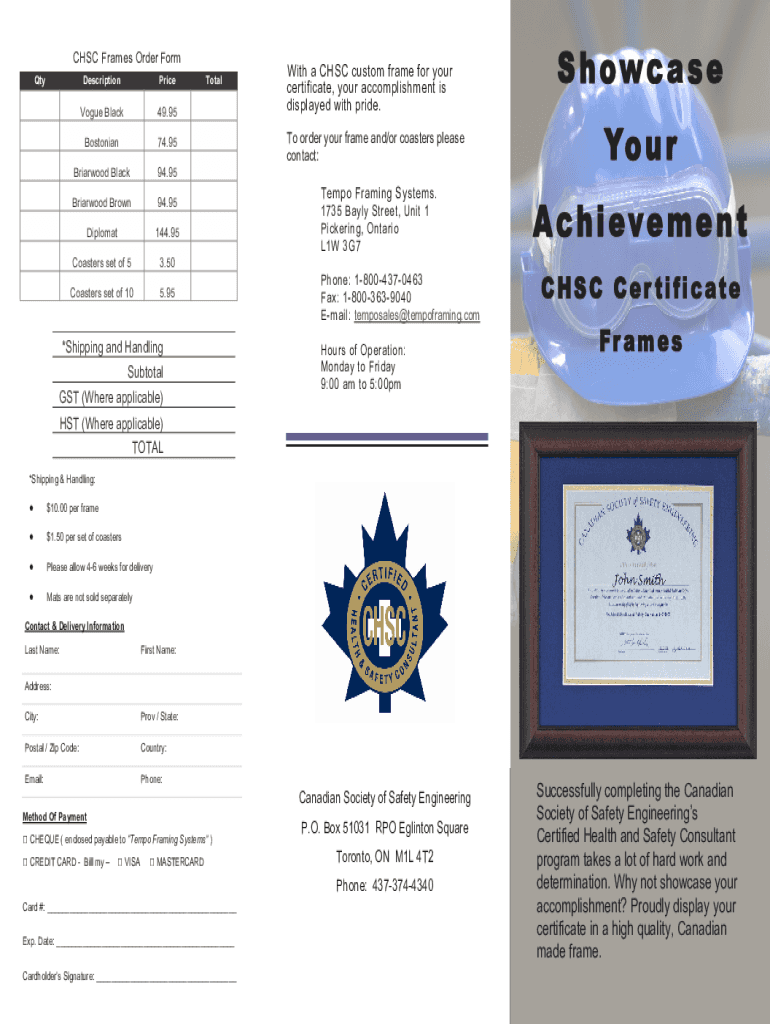 CSC Frames Order Form QtyDescriptionPriceVogue Black49.95Bostonian74.95Briarwood Black94.95Briarwood Brown94.95Diplomat144.95Coasters set of 53.50Coasters set of 105.95Total×Shipping and Handling