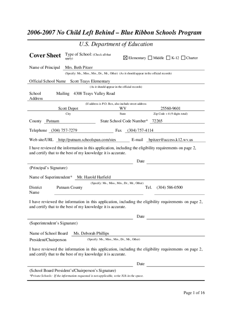 20062007 No Child Left Behind Blue Ribbon Schools Program