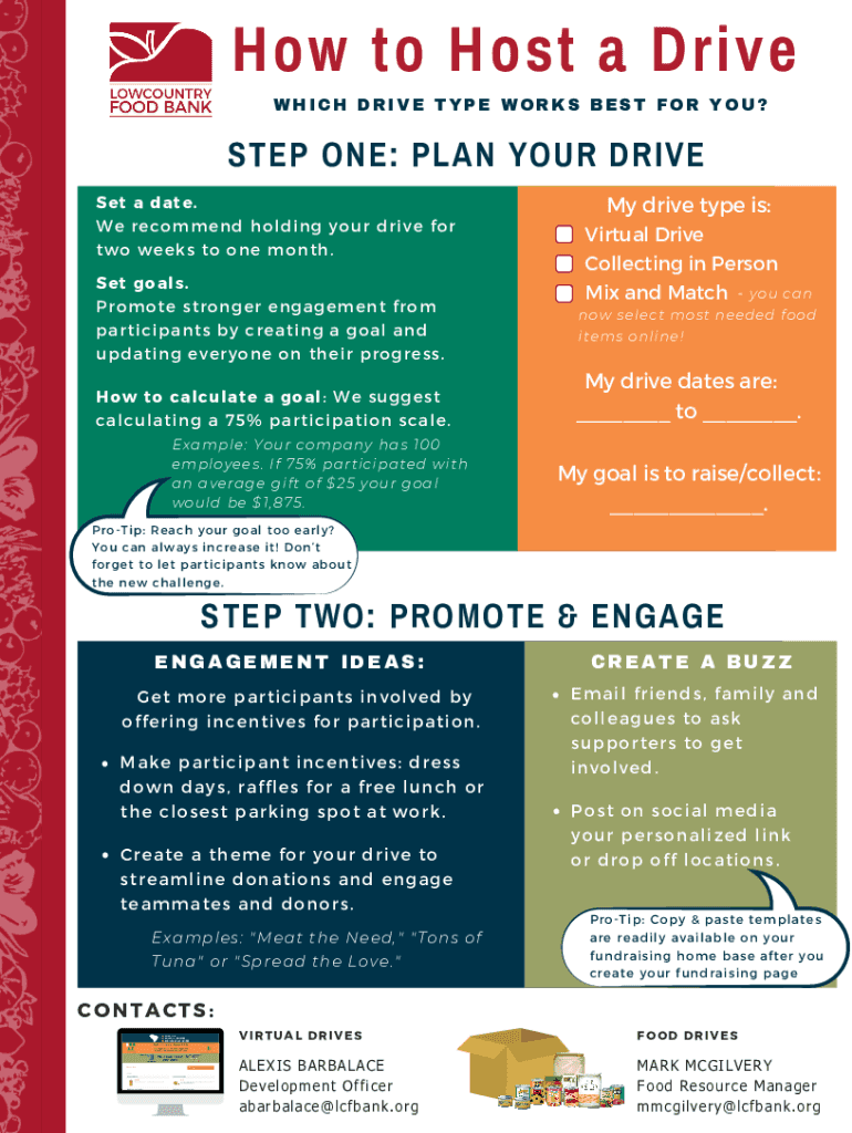 How to Host a Drive WHICH DRIVE TYPE WORKS BEST FOR YOU?STEP ONE: PLAN YOUR DRIVE Set a date. We recommend holding your drive for two weeks to one month. Set goals. Promote stronger engagement from
