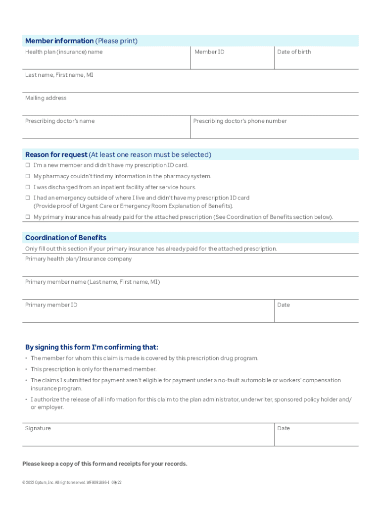 Prescription drug program Medicaid Direct Member Reimbursement Form Use this form to get refunded if you paid retail cost for your covered prescription drug(s). You can submit this form for any of