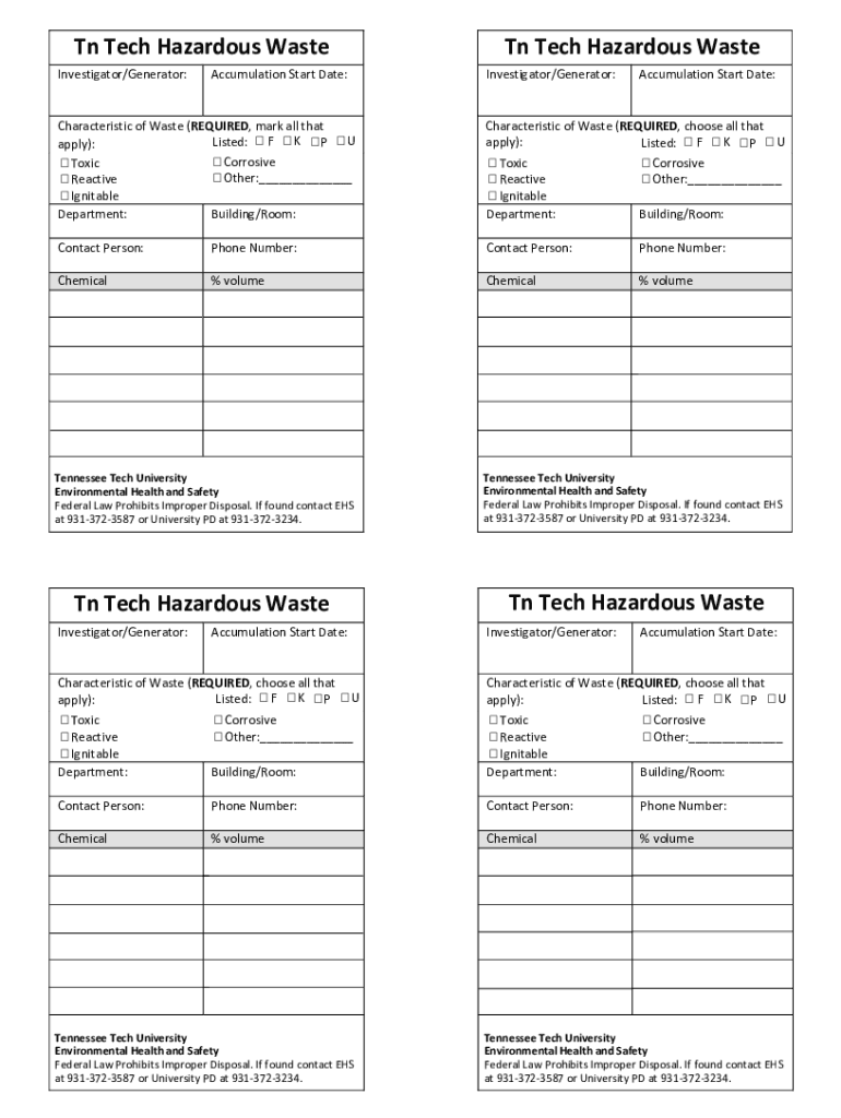 Any organization or individual who generates hazardous waste at tn tech facility needs to follow the proper procedures for handling and disposing of hazardous waste.