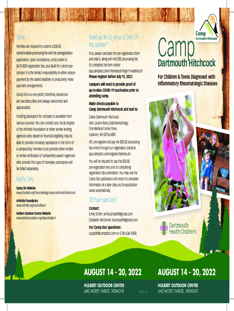 Tuition Families are required to submit a $30.00 nonrefundable processing fee with the preregistration application. Upon Acceptance, camp tuition is $670 ($30 registration fee, plus $640 for tuition)