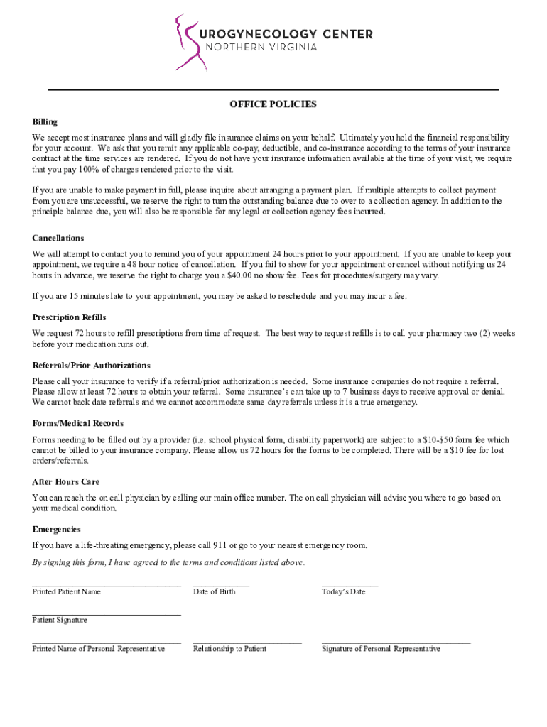 OFFICE POLICIES Billing We accept most insurance plans and will gladly file insurance claims on your behalf. Ultimately you hold the financial responsibility for your account. We ask that you remit