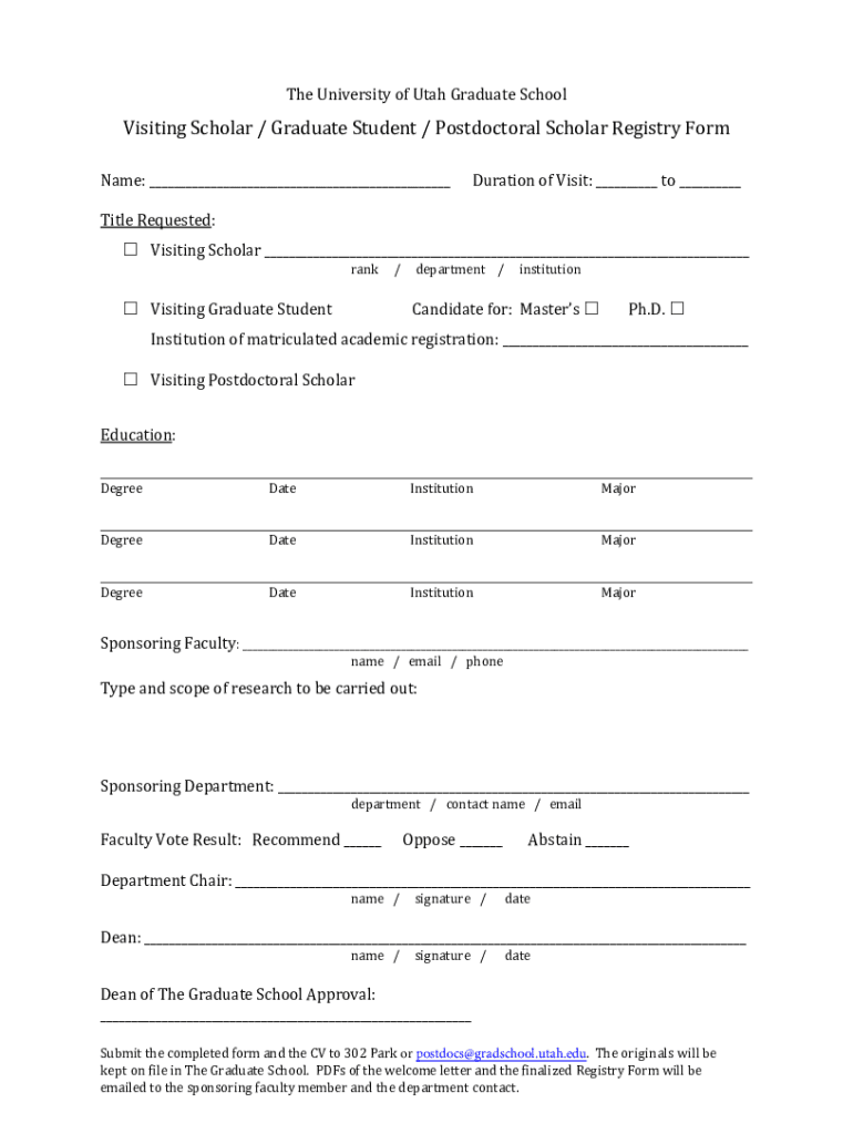 Get the free Visiting Scholar InformationCenter for Large Data ... - gradschool utah